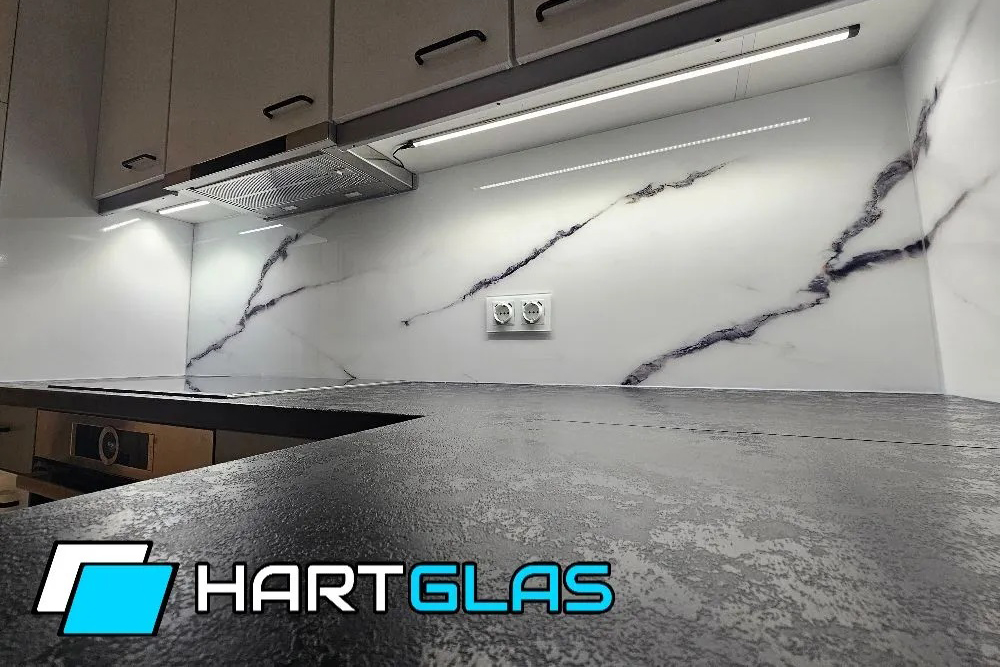 Glasscheiben können in der Küche als Arbeitsplatte oder Möbelfronten dienen. Die beliebteste Lösung ist jedoch, den Raum zwischen den Schränken, der früher für Fliesen reserviert war, durch Glas zu ersetzen...